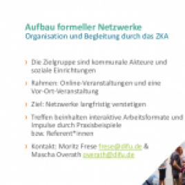 Unter dem Titel „Klimaanpassungsnetzwerke in Aktion“ wurde schließlich gezeigt wie formelle Netzwerke kommunale Akteure und soziale Einrichtungen bei der Klimaanpassung unterstützen können. Simone Podschun (ZKA) stellte den Aufbau und die Begleitung von Netzwerken durch das ZKA vor. Im Anschluss ging Katharina Gräfe (Evangelisches Werk für Diakonie und Entwicklung e. V.) auf das 2025 gegründete KABS Netzwerk ein. Die Vernetzung der KABS bietet ihren Mitgliedern einen klaren Mehrwert, indem sie Zugang zu aktuellem Fachwissen und praktischen Erfahrungen schafft sowie gegenseitiges Lernen und Unterstützung bei konkreten Problemen ermöglicht. Organisiert wird das Netzwerk über regelmäßige Treffen und thematische Workshops, die alle zwei Monate digital stattfinden, ergänzt durch eine digitale Austauschplattform (ZKA-Community) und thematische Arbeitsgruppen.